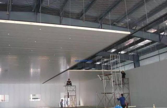 7. When installing large-span top cold storage plates, if supporting steel beams have been installed in the storage, the top storage plates and supporting steel beams should be fixed with rivets when installing each storage plate. Each top storage plate should be hit with two rows of three. Rivets; if the type of lifting point is adopted, the installation and construction work of the hanging structure should be completed before the installation of the roof slab to ensure that the lifting points can be installed at the same time during the installation of the roof slab; the lifting point should ensure that each slab is installed There are at least two points along the width.