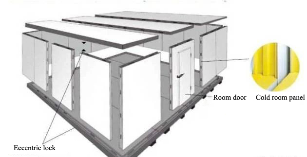9. When installing the polystyrene library body, the verticality error of the wallboard should be corrected while the top library board is installed. The length of the top storehouse board should be 10mm shorter than the outer surface of the wallboard. After the top storehouse board is installed, when installing the outer corner, the 10mm gap should be marked with foam to ensure the sealing performance of the storehouse body.