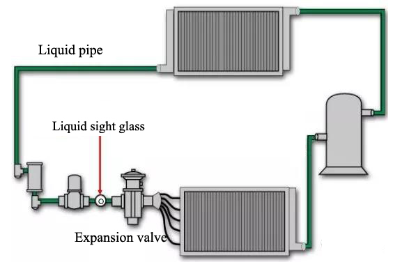It is mainly used to indicate the condition of the refrigerant in the liquid pipeline of the refrigeration device and the water content in the refrigerant. Usually, different colors are marked on the case of the sight glass to indicate the water content of the refrigerant in the system.