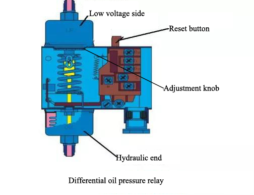 The electrical switch that uses the pressure difference between the suction and discharge of the lubricating oil pump as the control signal, when the pressure difference is less than the set value, stops the compressor to protect it.